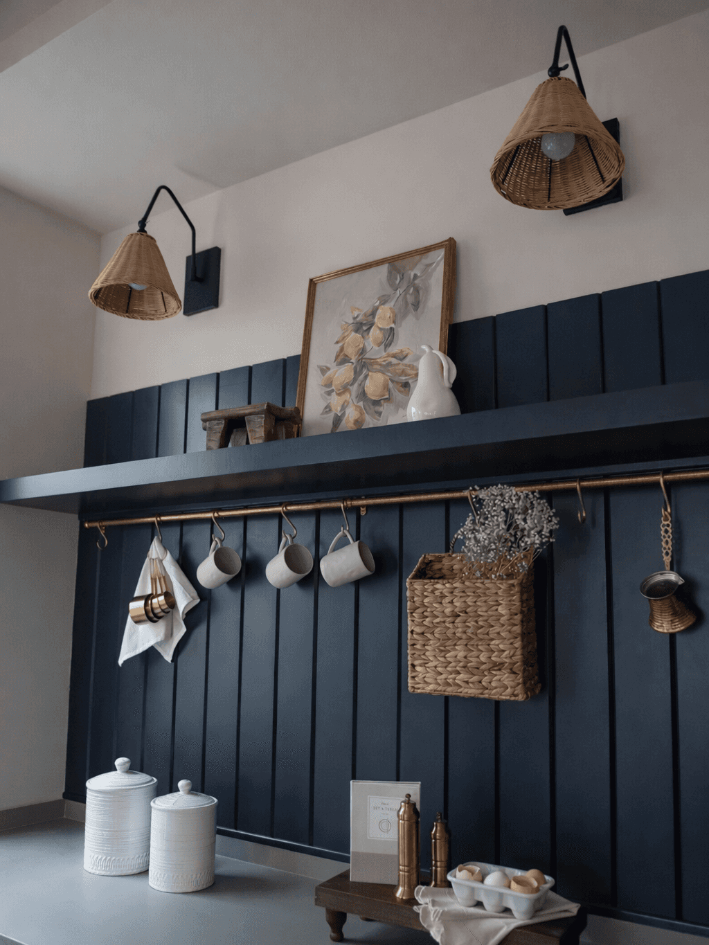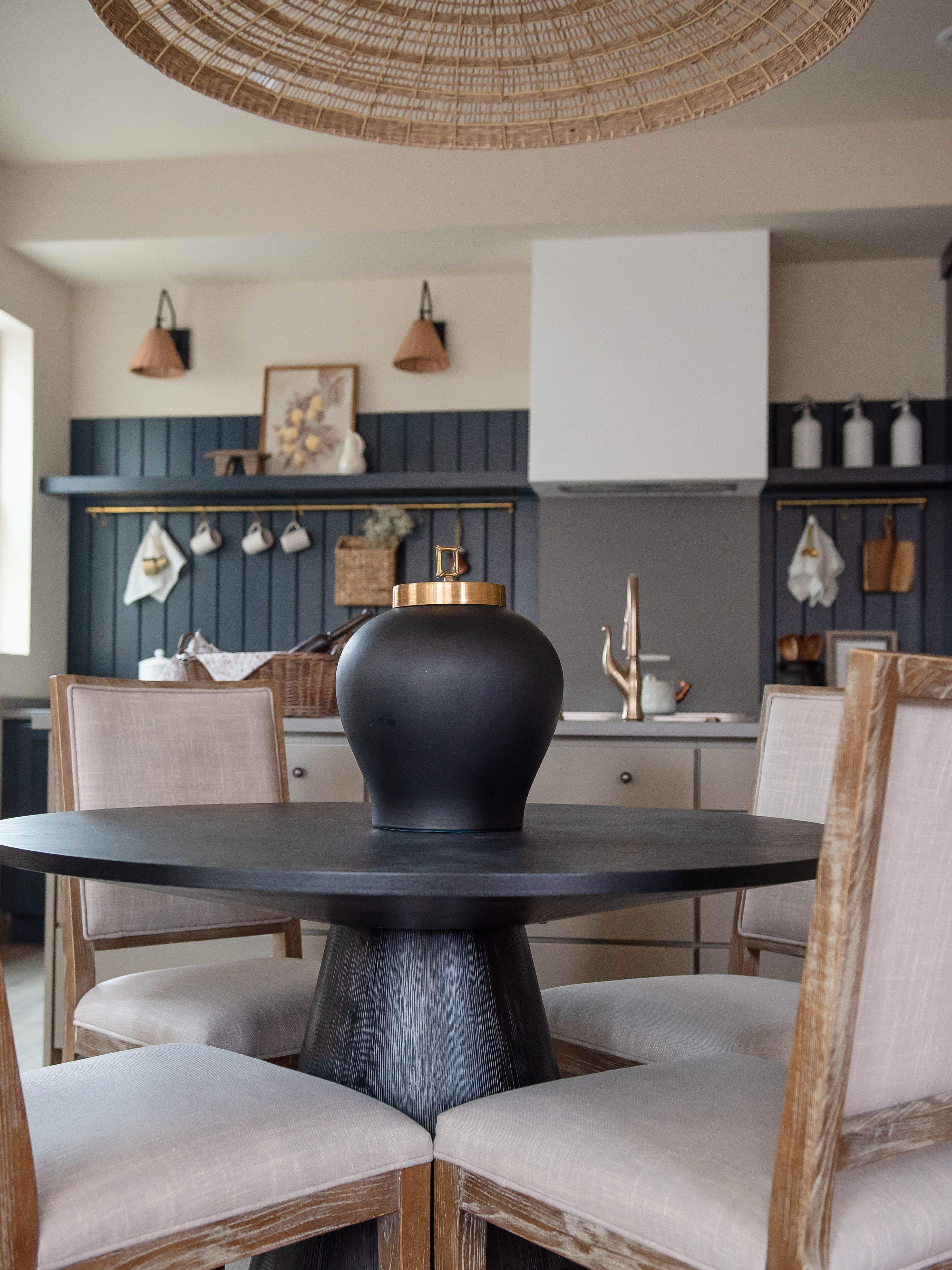 I truly love the layers throughout this kitchen—the woven textures, the warmth of the materials, and the thoughtful details all come together beautifully. It may be small in size, but it makes such an impactful statement.